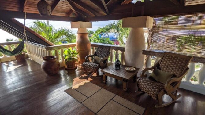 Здание построено в колониальном стиле, все номера элегантно оформлены. Перед входом обустроена приятная лаундж-зона с красивым бассейном. Удобно то, что частный пляж находится в нескольких шагах от гостевого дома. Заботливый персонал готов выполнить пожелания гостей в плане доставки еды и напитков, продуктов из магазина. Через них можно заказать массажиста, инструктора по дайвингу и сноркелингу. Поездка до термальных зон Сан-Рафаэль и ЛаПатос займет около получаса.