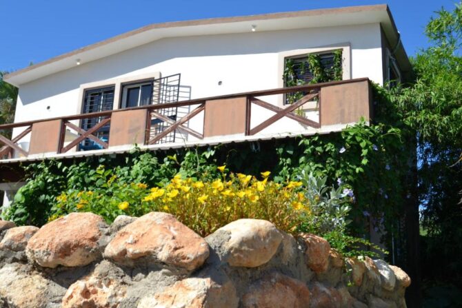 В стоимость проживания входит континентальный или вегетарианский завтрак (на выбор гостей). Во дворе обустроена прекрасная зона отдыха с бассейном и безупречным ландшафтным дизайном. Окна гостевых комнат выходят на море. В комнате есть балкон, с которого удобно встречать рассвет или провожать закат. Спальня оформлена с домашним уютом. Она совсем не похожа на стандартный гостиничный номер. Интерьер любовно дополнен полками с книгами, картинками в рамочках, зеркалами в резных окладах и другими приятными домашними мелочами.
