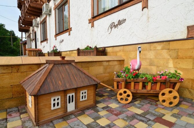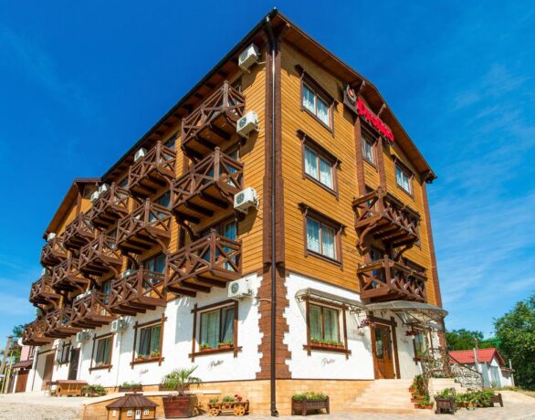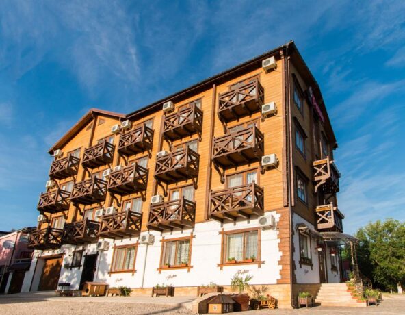 4-этажный отель расположен в 60 метрах от моря. Для проживания родителей с детьми предназначены семейные Стандарты. Нужно обратить внимание на то, что это очень компактные номера (18 кв. м), поэтому многим они могут показаться чересчур маленькими. Отель позиционируется, как место с полным соответствием европейским эко-стандартам. В строительстве использованы только натуральные материалы, сам дом и даже балконы сделаны из дерева, привезенного из лесов Западной Украины. При заезде взимается залог в размере 1000 руб. (цена актуальна на весну [y] г.). При выезде деньги возвращаются. Дополнительные спальные места платные. Во дворе оборудованы детская площадка и зона для барбекю. В здании работает столовая. Завтраки включаются в стоимость проживания по желанию гостя. Имеется общая кухня с полным набором бытовой техники и посуды.