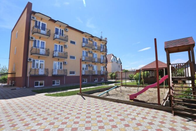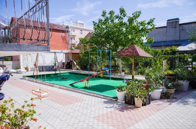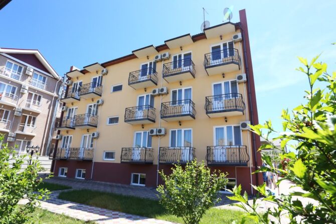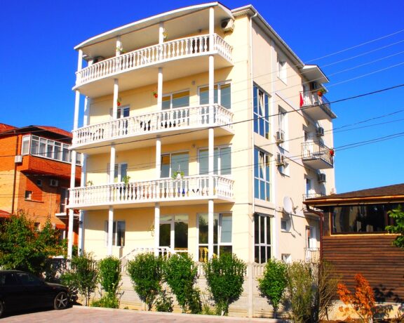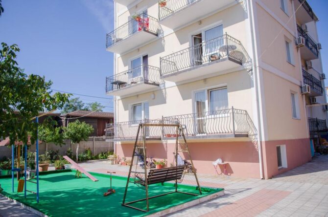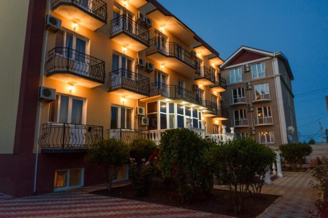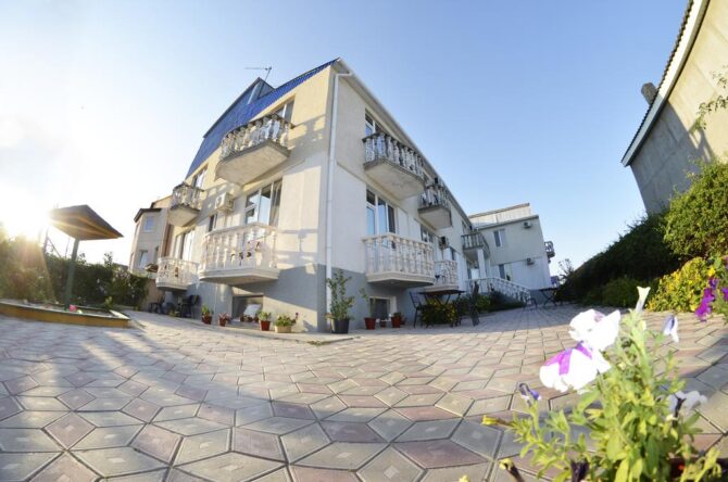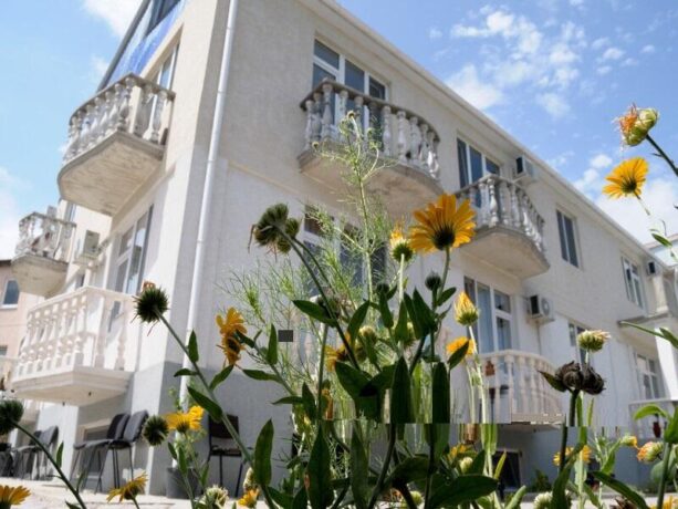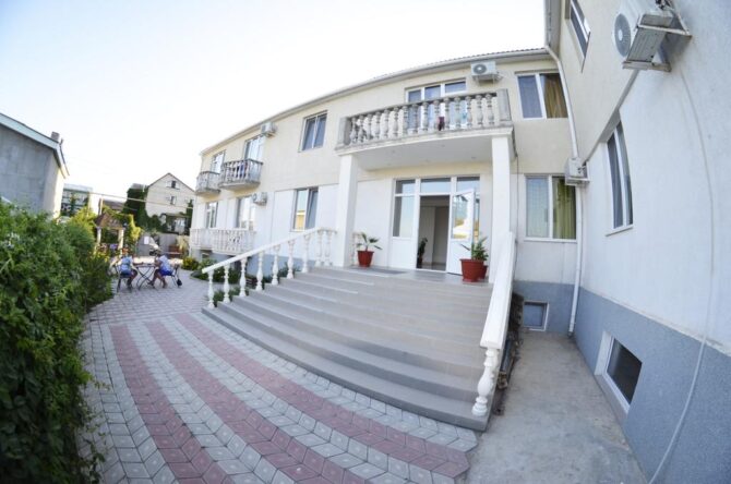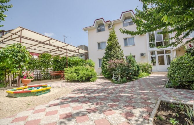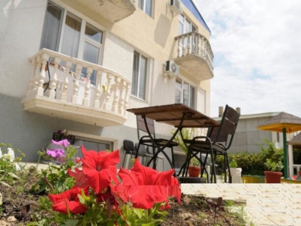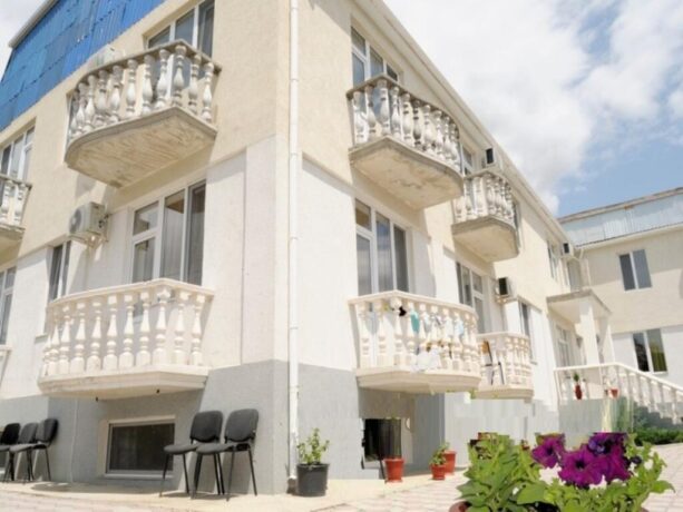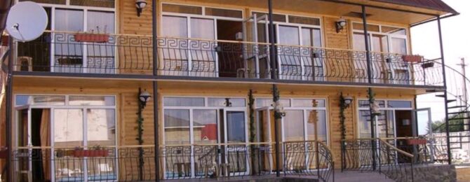 Мини-отель построен на первой береговой линии. Это 3-этажное здание, в котором все номера имеют балконы. Для семейного отдыха с детьми здесь созданы лучшие условия. Номерной фонд просторные, есть место для установки дополнительного спального места все удобства. Семейным парам лучше всего заказывать двухкомнатные номера. В каждом из них предусмотрена система кондиционирования и холодильник. Во дворе находится детская площадка с качелями, батутом и песочницей. Рядом установлен каркасный бассейн, в котором можно купаться, не выходя с территории гостиницы. В здании открыто кафе. Питание не входит в стоимость проживания. Завтрак, обед и ужин заказываются по меню.