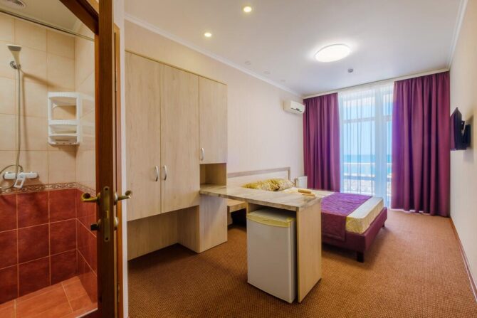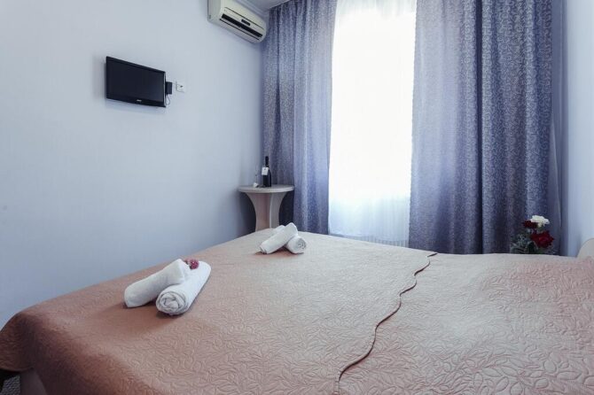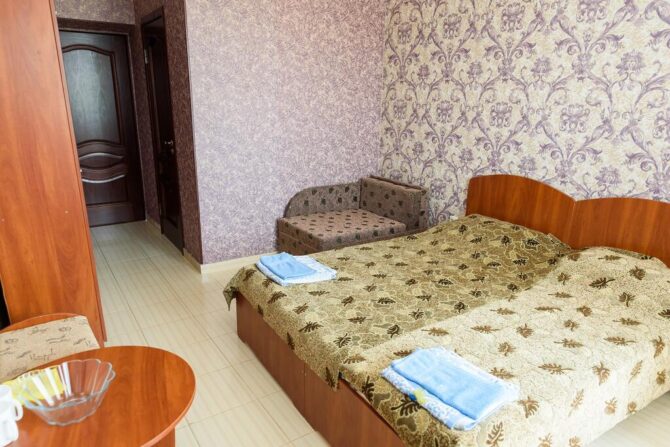 «Приемлемое по ценам и удобное по расположению место. В номере есть все необходимое. Дополнительно можно попросить чайник и посуду. Телевизор старенький, родом из 90-х годов. На улице есть детская площадка и уютная беседка. Пляж через дорогу, аптека, магазин, дешевые столовые – всё находится поблизости» Роман, Россия