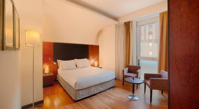 На Via Pietro Paleocapa расположился уютный урбанистический отель NH Bergamo. Для удобства гостей здесь предоставлены первоклассные номера с современной техникой, чайными принадлежностями, сейфом, сплит-системой и шикарной ванной комнатой с банными аксессуарами. Континентальное меню включено в стоимость предварительного бронирования.