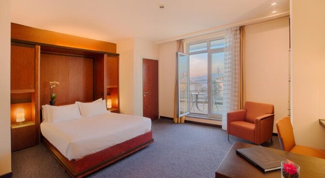 Желающим полакомиться настоящей итальянской кухней стоит заглянуть в роскошный ресторан гостиницы. Здесь можно насладиться авторской кухней в прекрасной обстановке и понаблюдать за непревзойдёнными видами города, открывающимися с террасы. Для расслабления гости могут посетить сауну. Кроме того, здесь есть отличный тренажёрный зал и тренер, помогающий подобрать оптимальные нагрузки. Проведение деловых совещаний проходит в специальном зале, рассчитанном на 100 человек.