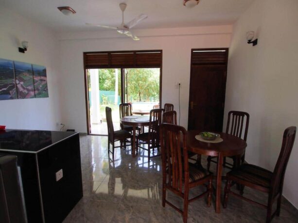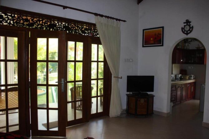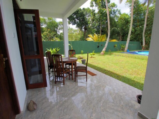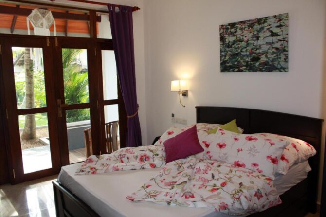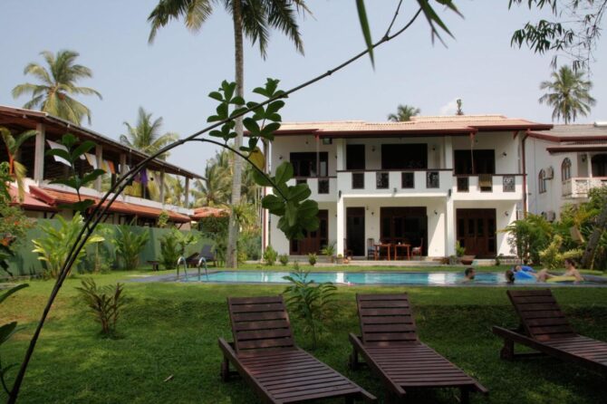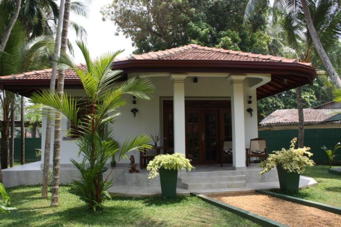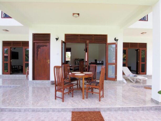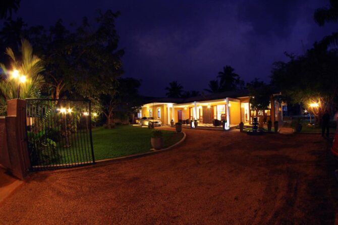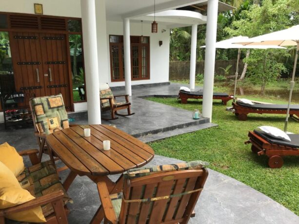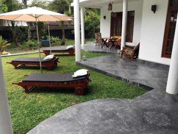 Комфортная вилла с собственным садом находится в полутора километрах от золотистых пляжей Бентоты. Услужливый хозяин обеспечивает трансфер от/до побережья, учитывая потребности гостей в пляжном отдыхе. К океану возит администратор гостевого дома, его просто нужно об этом попросить. Если не уезжать на пески, то в доме также есть, чем заняться. На лужайке во дворе обустроено уютное патио. Поставлены мягкие шезлонги, кресла-качалки, диванчики с подушками. Внутри дома имеются отдельные спальни с ванными комнатами, общая кухня и гостиная. В ней каждое утро на стол накрывают континентальный завтрак. Доступны СПА-услуги местных знатоков аюрведы. Заявку можно оставить на ресепшн. Также можно заказать обед и ужин. Его приготовит работник по дому. Владельцы отеля проживают в Германии, поэтому вилла построена по немецким стандартам. Обслуживание гостей обеспечивают братья хозяина, которые занимаются на острове организацией экскурсий и сафари. Персонал хорошо говорит на немецком и английском языках.