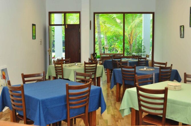 Этот двухзвездочный пляжный отель состоит из 36 номеров. Сюда приезжают, чтобы проводить как можно больше времени на пляже, ловить рыбу, принимать СПА-процедуры и сеансы аюрведического массажа. Организацией питания занимается ресторан. На завтрак подаются блюда интернациональной кухни. Обед, полдник и ужин обслуживается по меню. Во дворе посреди пышного тропического сада установлен бассейн. Рядом с ним можно не только отдохнуть в шезлонге, но и занять один из развешанных на пальмах гамаков. На террасе установлена летняя мебель. У администратора отеля можно взять принадлежности для барбекю и пожарить на углях морепродукты, мясо или овощи. На побережье популярны водные виды спорта: каноэ, дайвинг, серфинг.
