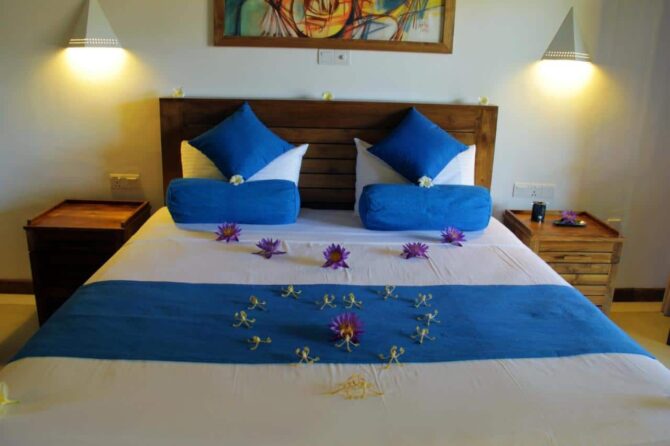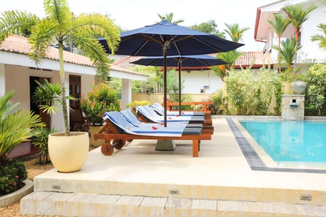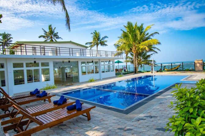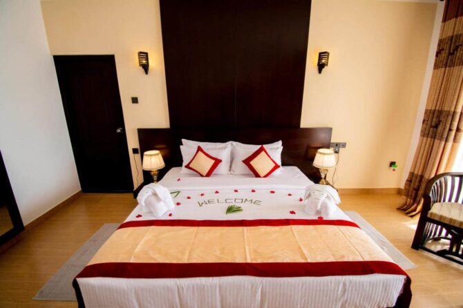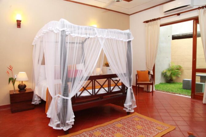 В фонде – 4 семейных и 6 двухместных номеров. В каждом предусмотрены кондиционер, мини-бар, чайная/кофейная станция, ванная комната с современной сантехникой. Основной козырь отеля – собственный золотистый пляж на очень удобном участке береговой линии. рядом расположена небольшая гавань с пирсом для рыболовецких лодок и катеров. Персонал поможет с рыбалкой. К услугам гостей – трансфер от/до аэропорта, завтрак, доставка еды и напитков в номера, открытый бассейн, бесплатные парковка и Wi-Fi. Завтрак сервируется в формате шведского стола, но можно заказать континентальный (английский, халяльный, вегетарианский, американский или азиатский). В обед кухня не обслуживает. Зал вновь открывается к ужину, который накрывается на линии раздачи. Шриланкийские отели открывают на своей территории оздоровительные салоны аюрведы. Но в «Манаре» предлагается только пляж, солнце и великолепный сервис.