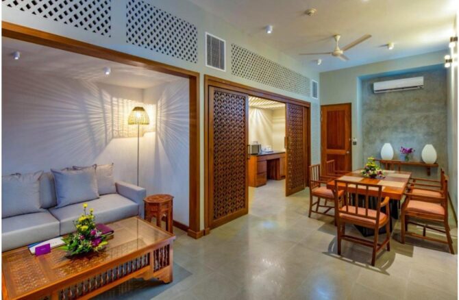 Старинная вилла, построенная в колониальную эпоху, была отреставрирована и превращена в мини-отель в 2014 году. Владельцы решили превратить ее в место для комфортных занятий йогой и аюрведой. В распоряжении гостей – 6 просторных спален с собственной ванной комнатой. Все интерьеры эксклюзивны, но кровати по традиции накрыты балдахином. Утром в ресторане накрывается азиатский завтрак (формат шведского стола). Остальное время кухня работает по меню. На территории отеля работает оздоровительный центр Retreat. Отдыхающим предлагается специальный пакет, включающий консультацию специалиста и составление плана аюрведического лечения, ежедневные сеансы массажа, полный пансион (3-х разовое питание) для очистки и сбалансированной работы организма, йога и медитация, роскошные условия проживания.