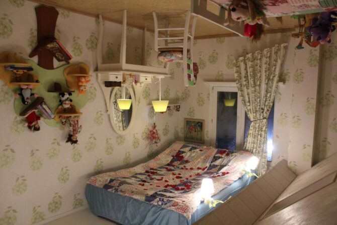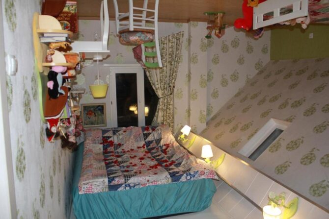 «Нам с детьми идея переночевать в перевернутом доме понравилась сразу. Утром после пробуждения все были в полном восторге от того, что над кроватью нависала другая кровать, а в душ пришлось идти по «потолку». Это невероятное ощущение игры из детства, а туда, как известно, хочется вернуться всем» Настя, Россия