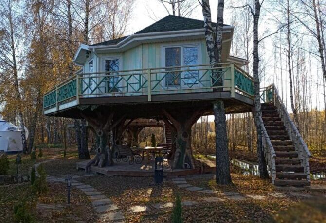 Интересный мини-отель выполнен в форме домика на дереве. Хозяева предлагают вернуться в детство, но пожить в более комфортных условиях. Здесь действительно здорово, как снаружи, так и внутри. Дом рассчитан на проживание 4-х человек. Для гостей оборудована кухня с обеденной зоной, есть общий лаундж с телевизором и удобным диваном, в спальнях установлены удобные кровати. Утром в отеле подается завтрак. В распоряжении постояльцев бесплатная парковка и детская игровая площадка.