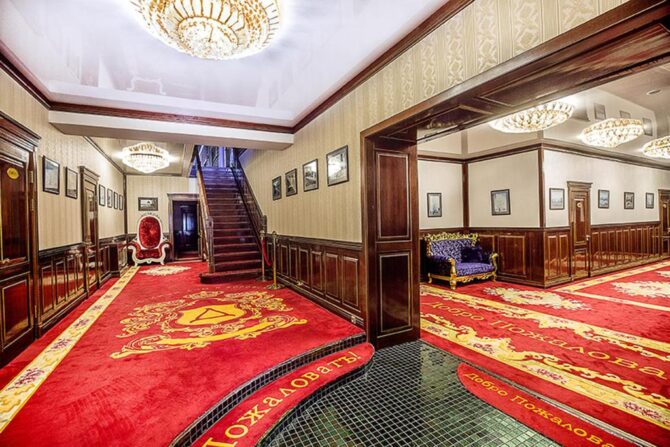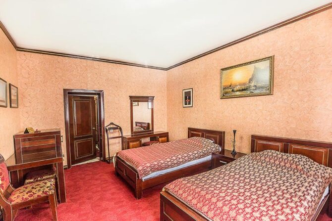 Этот роскошный отель, оформленный в стиле классицизма, гости называют оазисом комфорта и уюта. Каждый номер имеет собственный дизайн. «Стандарты» специально созданы для деловых людей, приезжающих в командировки. Полулюксы оценят семейные пары. Безупречные Люксы послужат достойным местом проживания для взыскательных туристов. Гостиный двор расположен в самом центре древнего города. Река Протва находится в 10 минутах ходьбы, как и основные достопримечательности, а также кафе и рестораны. Отель не предоставляет услуг по организации питания. Желающие могут готовить еду самостоятельно на общей кухне, заказать блюда с доставкой или сходить на ужин в понравившийся ресторан. В каждом номере предусмотрен мини-бар, чайник и холодильник. Администрация гостиницы сотрудничает с концертными организациями Боровска, поэтому всех постояльцев заранее информируют о приближающихся гастролях.