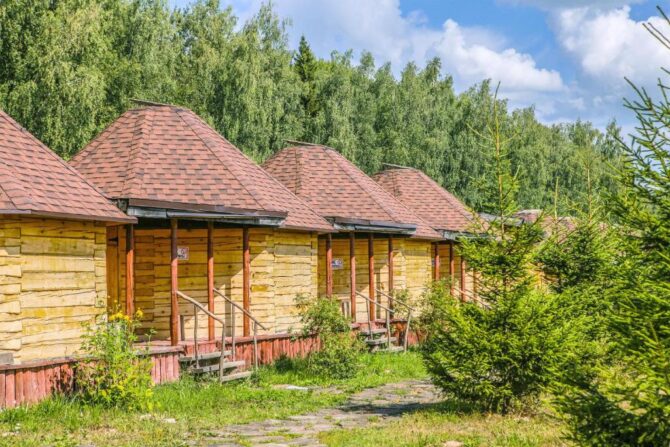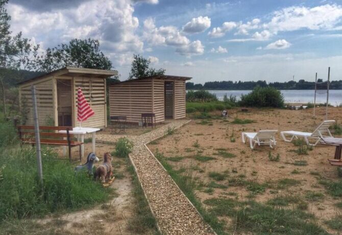 Комплекс маленьких деревянных домиков со всеми удобствами расположен на берегу озера Комлевское. В миниатюрных домиках есть все, что нужно для комфортного отдыха – спальня, кухня-гостиная, терраса с летней мебелью. От каждого из них ведет деревянная дорожка на пляж. На частной территории уже установлены шезлонги и зонтики. Гостей привлекает возможность пожить на природе, попариться в бане, прогуляться по окрестностям, сходить на рыбалку. Парковка бесплатная, можно приезжать с домашними питомцами. В стоимость проживания включены пользование мангальной зоной и принадлежностями для приготовления блюд на углях, бесплатный высокоскоростной Wi-Fi. Здесь можно взять в аренду лодку, заказать еду из Боровска, трансфер от/до вокзалов и аэропорта.