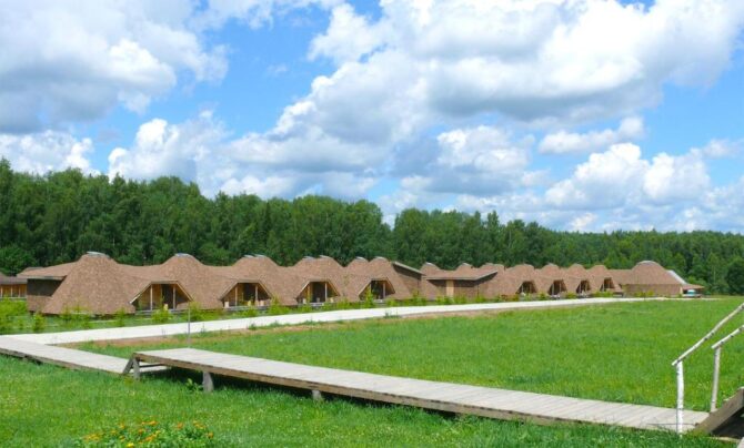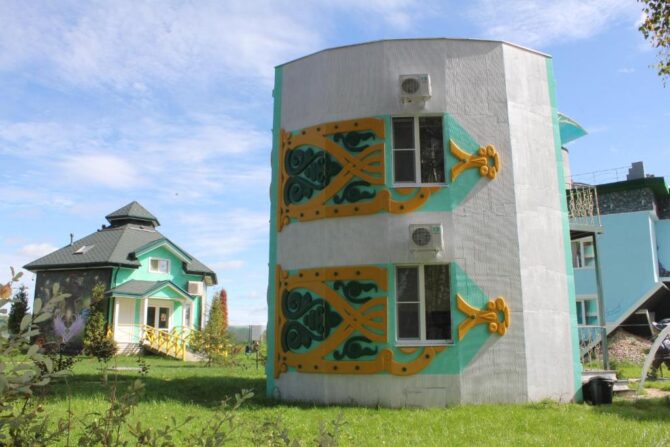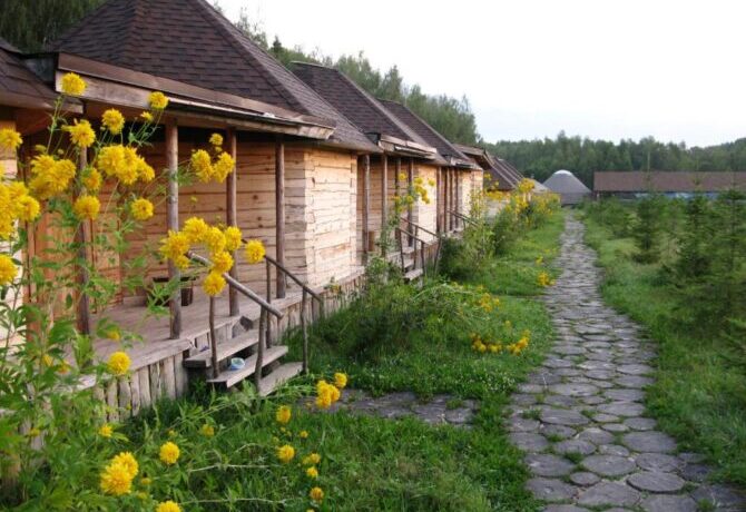 Этномир – это особенный гостиничный комплекс, созданный из экологически чистых материалов и представляющий традиции народов мира. «Сибирия» представляет собой вереницу деревянных домиков с крышами полусферами, сделанными в традиции юрт северных народов. Здесь все направлено на сохранение экологии. Естественное освещение обеспечивает окошко, расположенное на самом верху крыши, вся мебель, текстиль, внутренняя отделка выполнены из природных материалов. В нескольких минутах ходьбы находится этнографический музей истории и культуры народов Сибири и Дальнего Востока. Это еще один кусочек ЭТНОМИРА, расположенный под открытым небом. Что касается условий проживания в стилизованных юртах, то спать на земле не придется, для этого поставлены удобные кровати, столы и стулья также имеются, как и все остальные удобства.