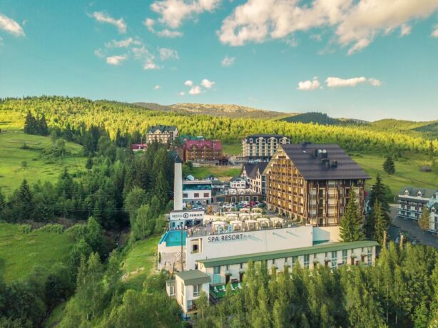 Комплекс специализируется на спа-услугах, находится в поселке Поляница. Расстояние до подъемника № 7 составляет 117 метров. Для размещения постояльцев подготовлено 77 номеров разной ценовой категории, от обычных комнат с аскетичным интерьером до шикарных апартаментов с камином в гостиной. Посещение Спа-центра входит в стоимость проживания. В нём есть всё для того, чтобы расслабиться после лыжных прогулок и спусков:
