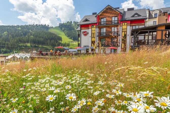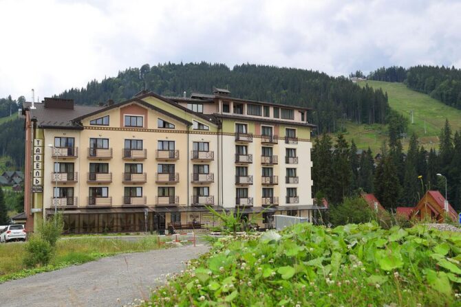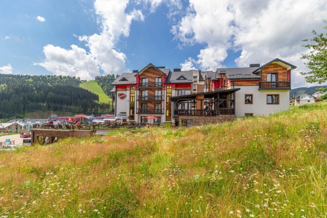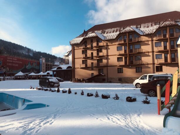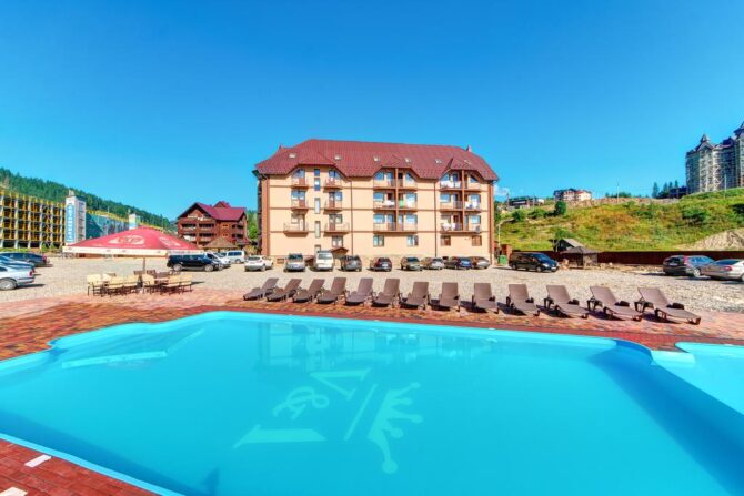 Современный трехзвездочный отель находится прямо на пересечении лыжных беговых трасс. В 200 метрах находится четырехкресельные подъемники 2R и № 7. По благоустройству он немного проще, чем соседний Tavel, но тоже комфортабельный. В зимний сезон в стоимость проживания включается завтрак. Практически каждый номер оборудован собственной мини-кухней, поэтому можно приготовить скромные блюда или сходить на обед в ресторан. Отели Буковеля в основном предоставляют постояльцам бесплатные парковочные места. Но в этой гостинице парковка платная.