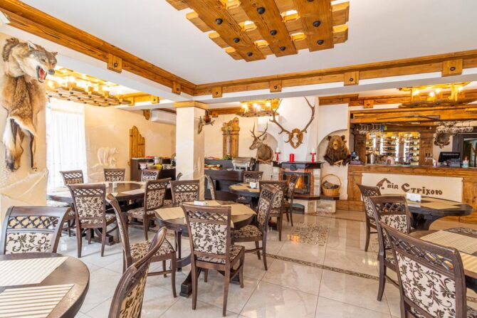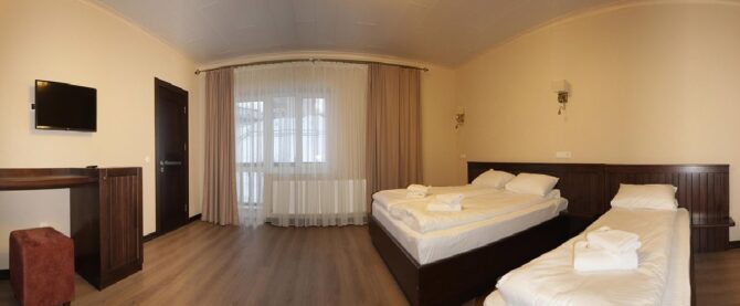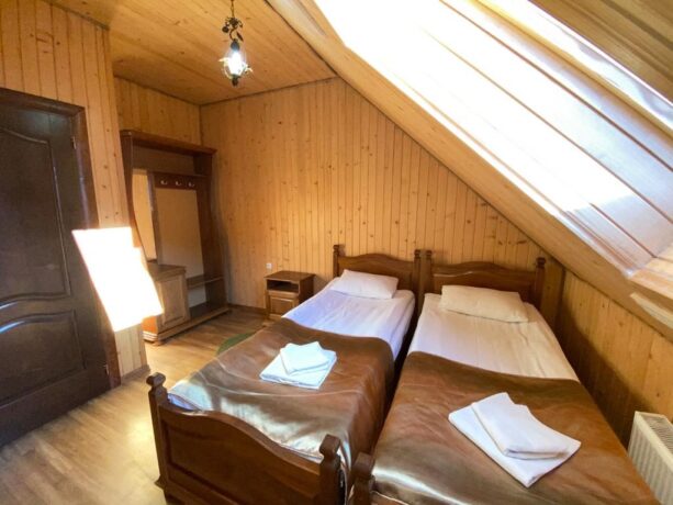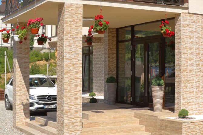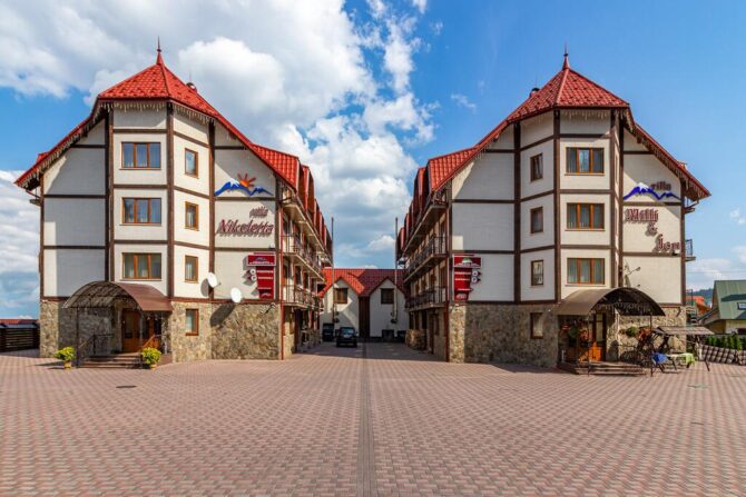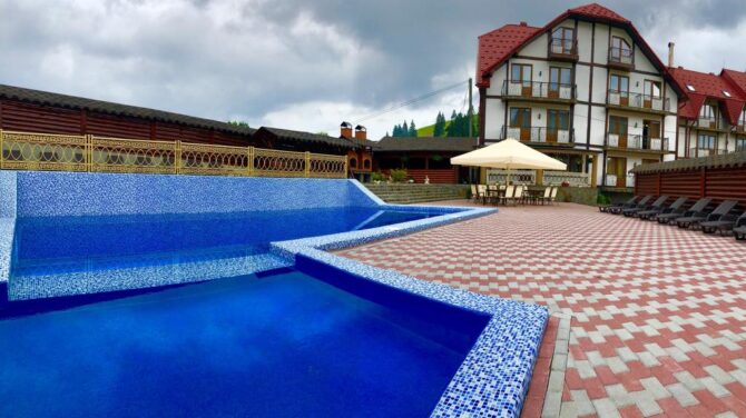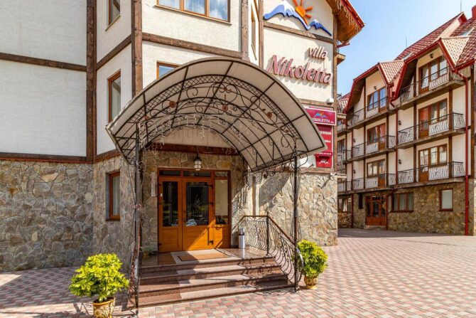 Вилла находится в поселке Поляница. Это два 3-х этажных корпуса с рестораном румынской и украинской кухни. Отель расположен на берегу реки, поэтому основной поток туристов здесь бывает летом. Частная оборудованная пляжная зона, бассейн, живописные окрестности привлекают романтиков и любителей позагорать. Зимой сюда лучше приезжать на собственном транспорте, так как до ближайшего подъемника – 1,5 км. В лыжных ботинках далековато идти. Особый наплыв постояльцев приходится на уик-энды. Сюда приезжают отдохнуть жители соседних городов. Администратор на ресепшене всегда подскажет, где весело провести время, куда сходить в ближайшие дни.