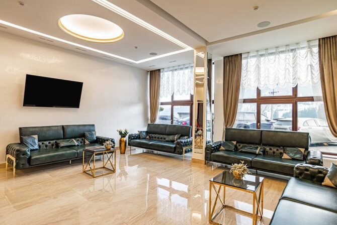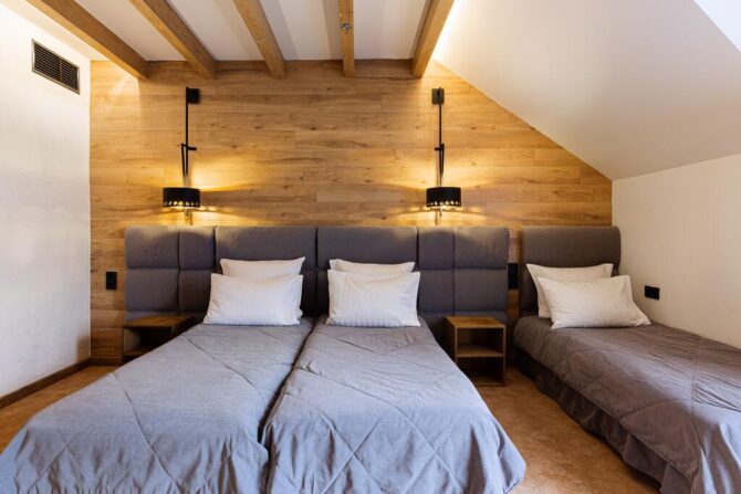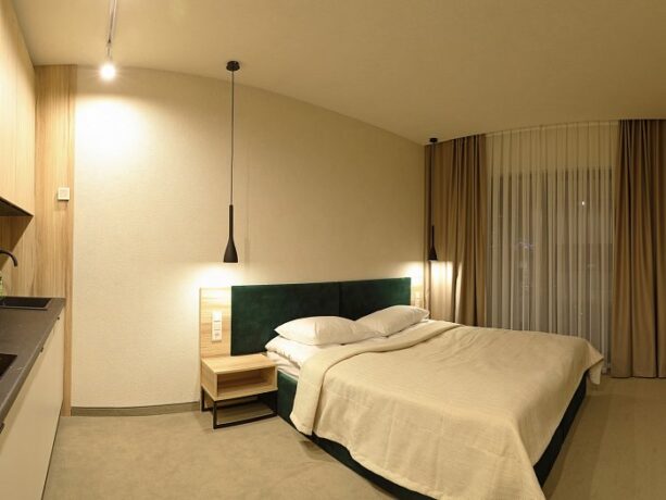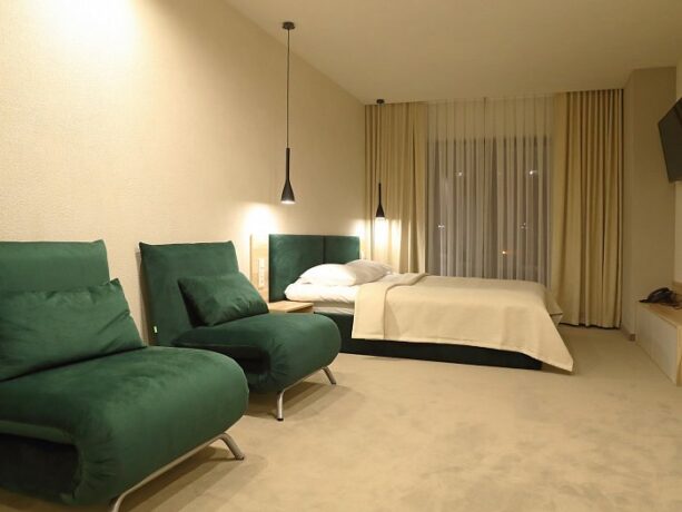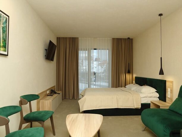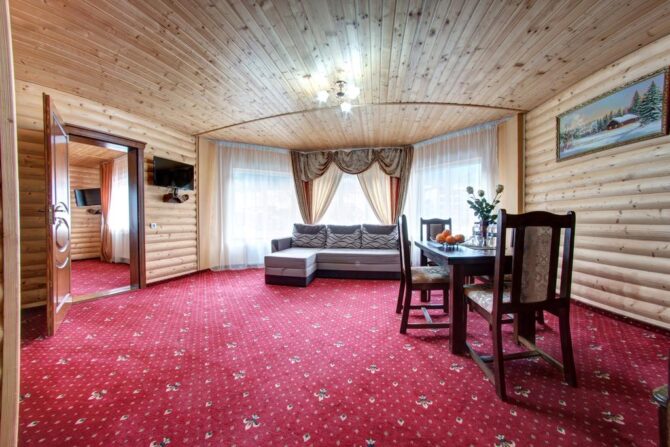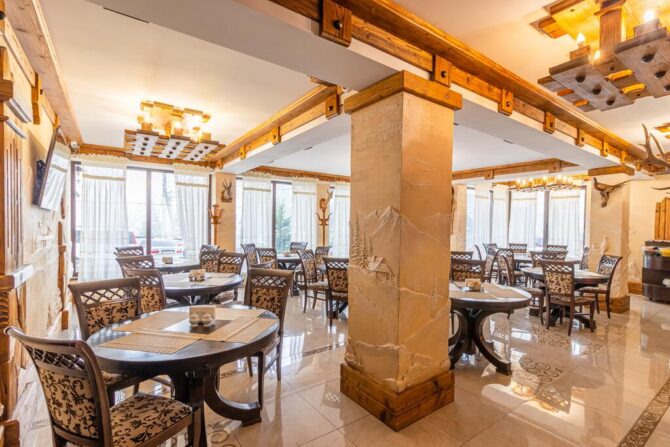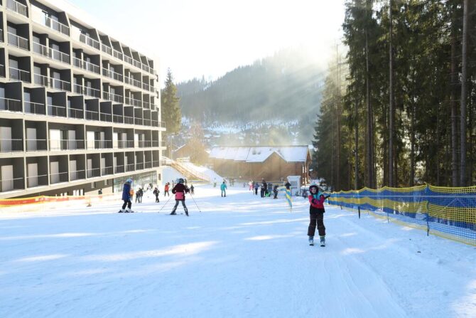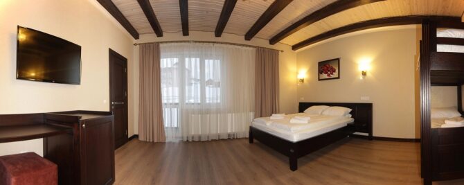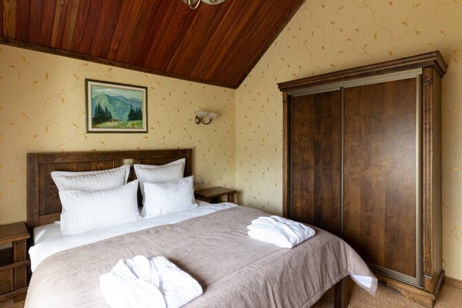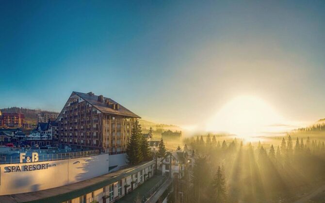 Еще один комфортабельный центр отдыха F&B Spa Resort ex Fomich Hotel находится в поселке Поляница. До горнолыжных склонов – 1,2 км, но владельцы организовали бесплатный трансфер к подъемникам и обратно. Расписание выдается на респшене. Размещение гостей предусмотрено в двух вариантах: