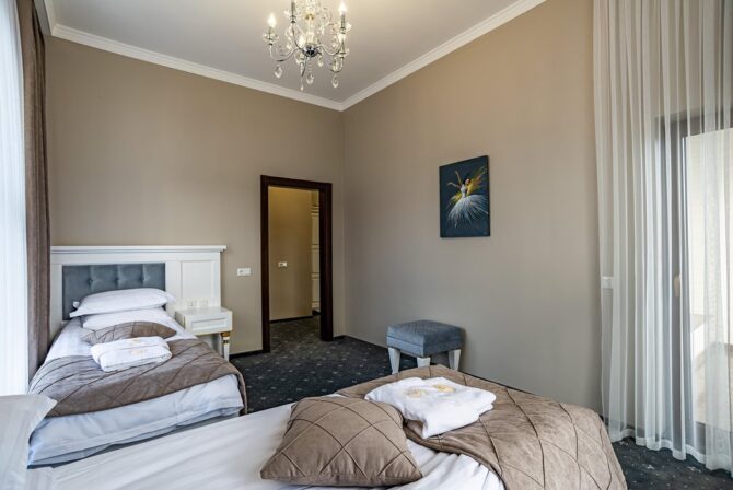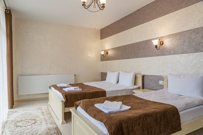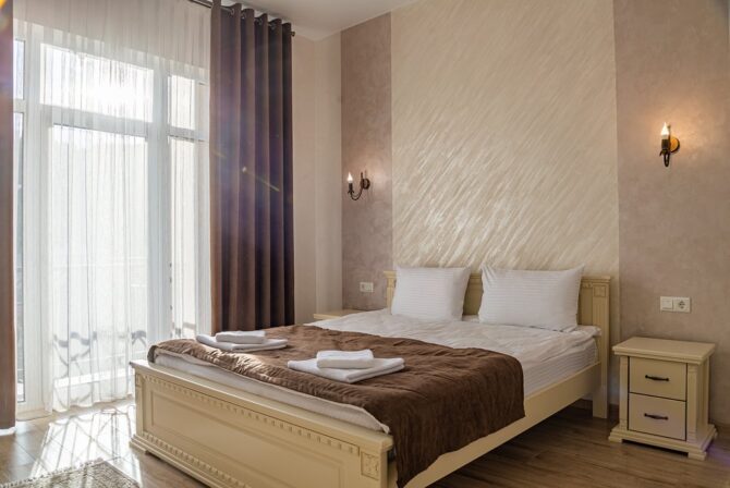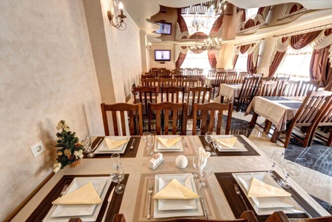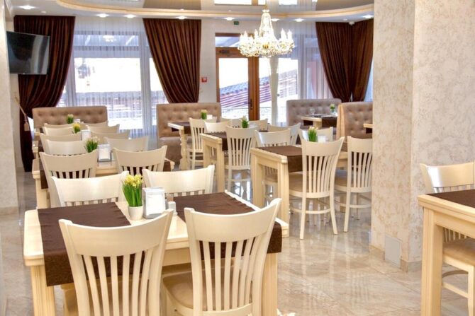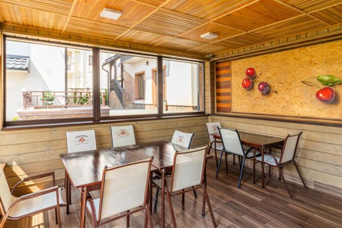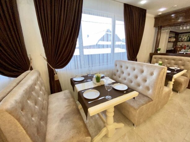 И снова Урочище Вишня, и вновь комфортабельный Gold Palace. Просторные комнаты, панорамные окна, балконы и уютная терраса предлагаются гостям при заселении. Континентальный завтрак включен в стоимость проживания. В него могут входить английские, ирландские, итальянские блюда. Среди предпочтений туристов – лыжные и велосипедные прогулки в зависимости от времени года. До ближайшего подъемника – 1 км. В 100 метрах находятся рестораны и магазины. Буквально в двух шагах работает сувенирный рынок.
