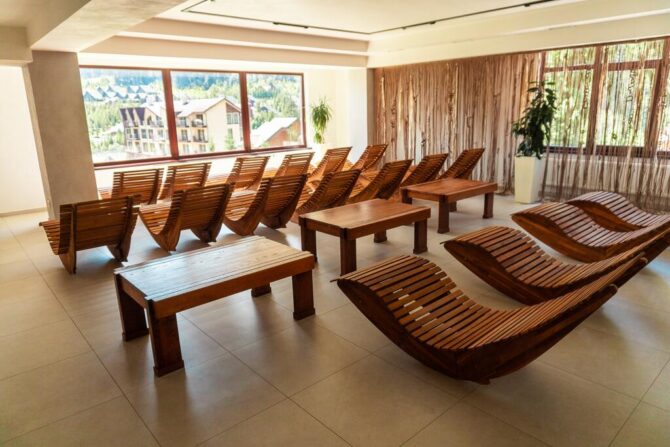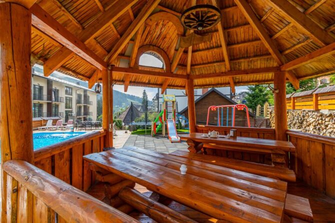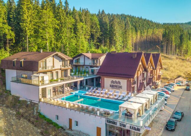 В 300 метрах от трехкресельного подъемника № 3 расположен по-домашнему уютный отель Karpatski Hotel & Spa. На его территории работает оздоровительный центр, включающий: