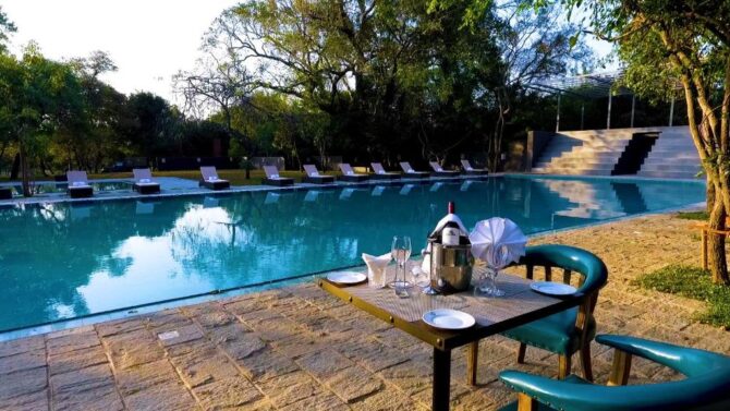 В каждом номере есть просторная терраса, откуда можно любоваться яркими красками джунглей. Рядом с открытым бассейном работает небольшой бар. В ресторане, где вечерами часто выступает саксофонист, подаются сытные обеды, диетические ужины и легкие завтраки.