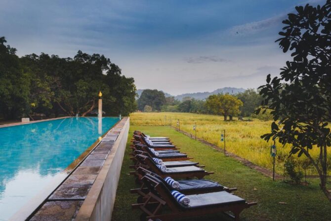 Гости отеля могут отправиться на пешие прогулки или присоединиться к сафари по ближайшим заповедникам. Ланкийские блюда доступны для посетителей ресторана, расположенного в отдельном здании. Из больших окон гастрономического заведения хорошо видны сад, бассейн и рисовые поля.
