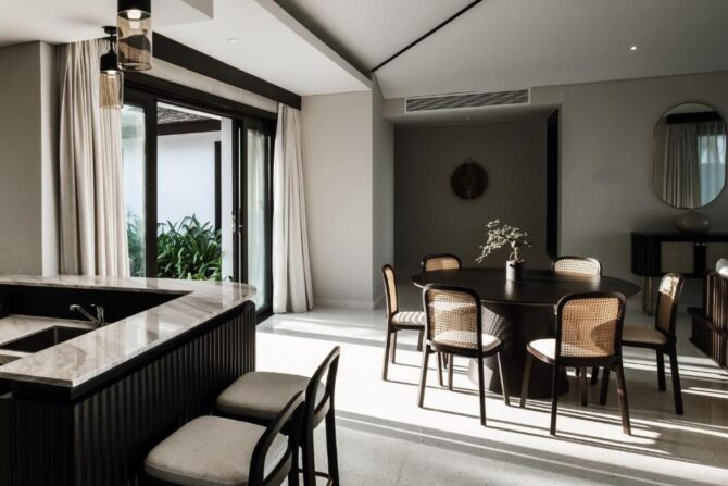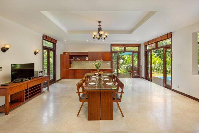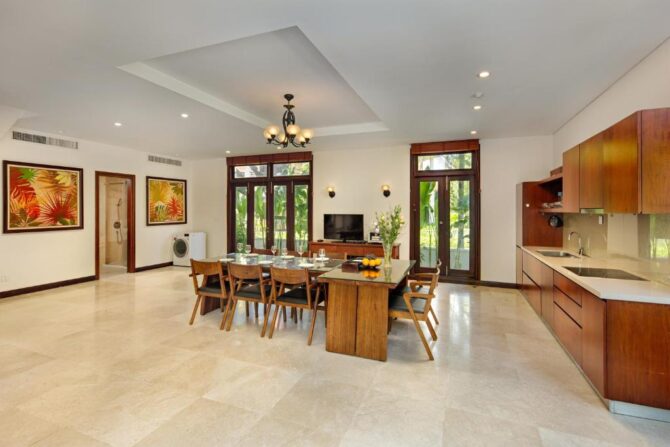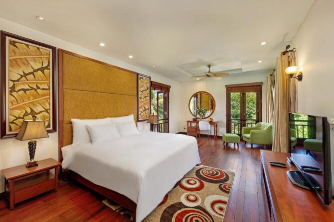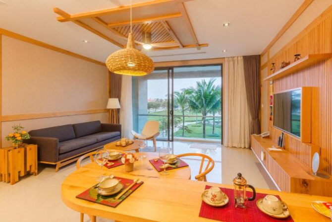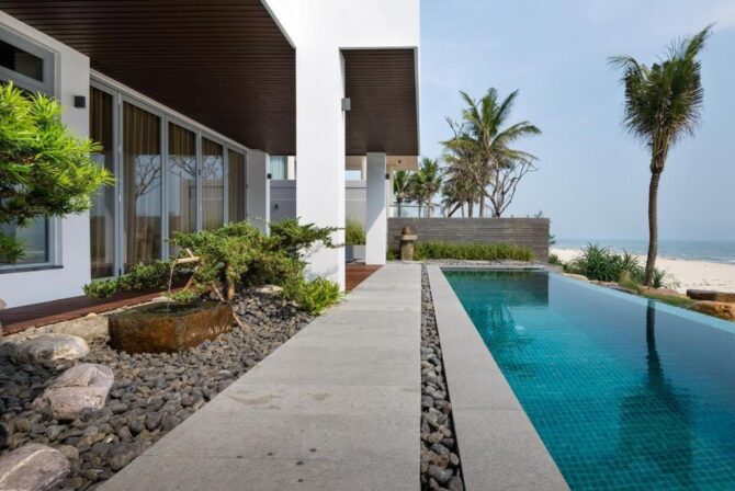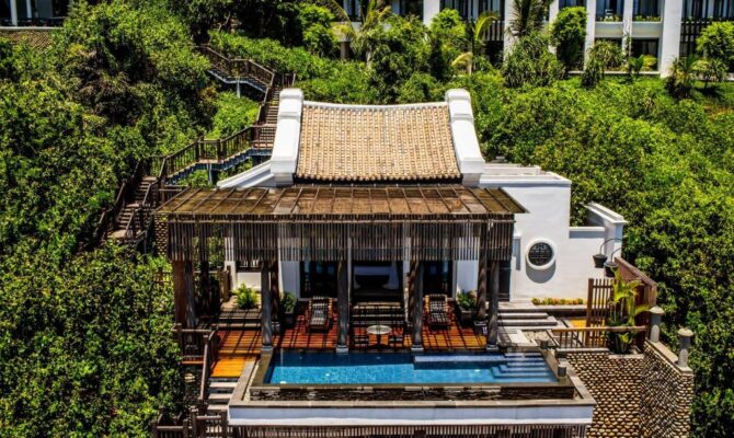 Комплекс вилл с открытыми бассейнами не имеет звезд комфортности, но оценена постояльцами на 5 баллов. Атмосфера уединенности создана за счет удаленного месторасположения отеля от туристической инфраструктуры Дананга. Здания со всех сторон окружены пышной растительностью. Гости просыпаются по пение птиц и шум морского прибоя. Номерной фонд составляют апартаменты с полностью оборудованной кухней. В ресторане для всех без исключения накрывается завтрак, затем кухня продолжает обслуживать по меню. К особенностям сервиса можно отнести бесплатный трансфер от/до аэропорта, возможность проживания с домашними питомцами. К услугам гостей: теннисные корты, пляж, терраса, общая зона отдыха, фитнес-центр, поле для гольфа в пределах 3-х км.