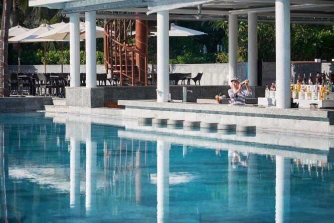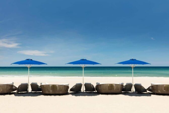 Pullman Danang Beach Resort 5* занимает отдельный участок первой береговой линии с прямым выходом к частному пляжу. Для проживания гостей подготовлено 187 номеров, в том числе виллы и пентхаус. Практически во всех имеется небольшая кухня. Владельцы построили множество инфраструктурных объектов, поэтому здесь можно провести отпуск или спланировать путешествие, не покидая территорию. Питание гостей обеспечивают ресторан и 2 бара. Экскурсионное бюро предлагает интересные туры по окрестностям Дананга и всему Вьетнаму. В отеле работает служба консьержей, которая поможет приобрести билеты, организовать трансфер, взять автомобиль напрокат.