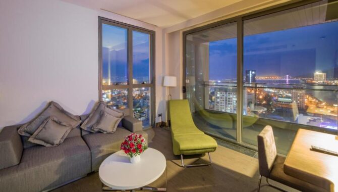 Стильный 5-ти звездочный Altara Suites by Ri-Yaz считается самым элегантным отелем Дананга. Его дизайн продумывал Сальвадор Перес Арройо – архитектор с мировым именем, популяризатор постмодернизма. В гостиничном фонде – 149 номеров с одной или двумя отдельными спальнями. В них созданы условия для уединения людям, путешествующим с семьями. Все роскошные апартаменты предлагают непревзойденный индивидуальный сервис, а также окна от пола до потолка, дизайнерскую кухню, изысканную спальню, бесплатный Wi-Fi, HDTV со спутниковыми каналами, кондиционер, сейф, стиральную и сушильную машины, ванные комнаты с отдельной ванной и отдельно стоящим душем, феном и туалетными принадлежностями. К услугам гостей: впечатляющий пейзажный бассейн на крыше, ультрасовременный тренажерный зал, просторные конференц-залы и изысканные гастрономические блюда.
