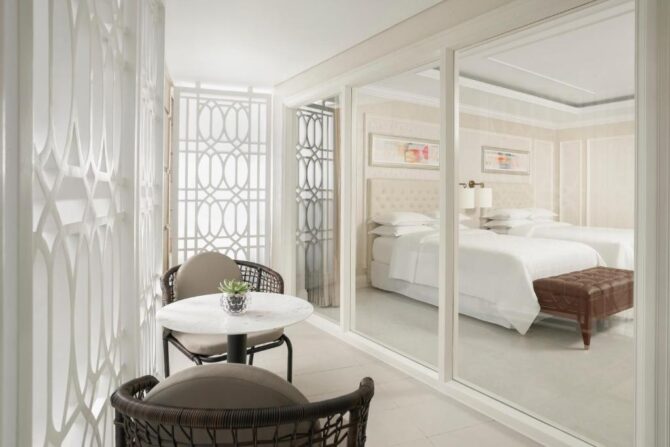 Отель приглашает отдохнуть в просторных номерах с современным дизайном, фирменными кроватями Sheraton Sleep Experience и отдельными балконами с потрясающим видом на бассейн или побережье Дананга. Заботливый персонал принесет завтрак в постель по первому требованию. Если захочется еще большего уединения, то можно заказать номер категории Люкс, в котором встроена небольшая кухня. Встретиться с друзьями и провести шумный вечер в их компании можно, собравшись в пляжном клубе La Plage. Этот отель предоставляет уникальные возможности организации любого вида досуга.