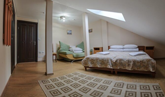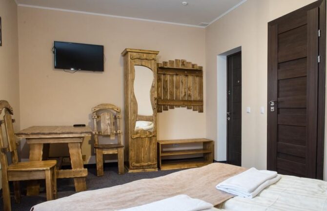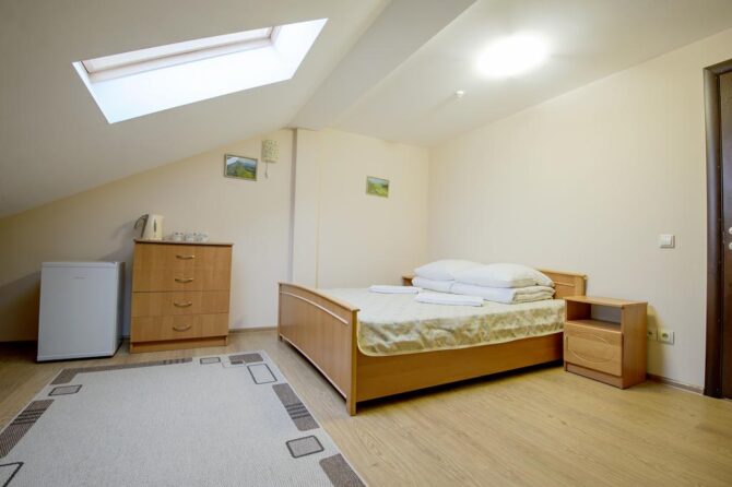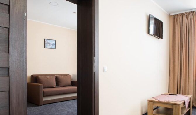 Уютный трехзвездочный отель готов предложить гостям отдых в комфортабельных апартаментах, отделанных деревом. Парам с детьми подготовлены семейные номера с настольными играми. В стоимость проживания входят завтрак и ужин. Кресельный подъемник находится рядом с домом. Персонал подскажет, как пройти на смотровую площадку «Труфанец». Недалеко от апарт-отеля оборудованы места для пикников. К услугам гостей в свободное время – оздоровительный спа-центр. Лечебная сауна с релакс-бассейном придаст силы после занятий спортом.