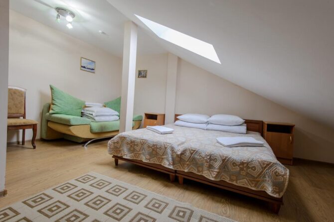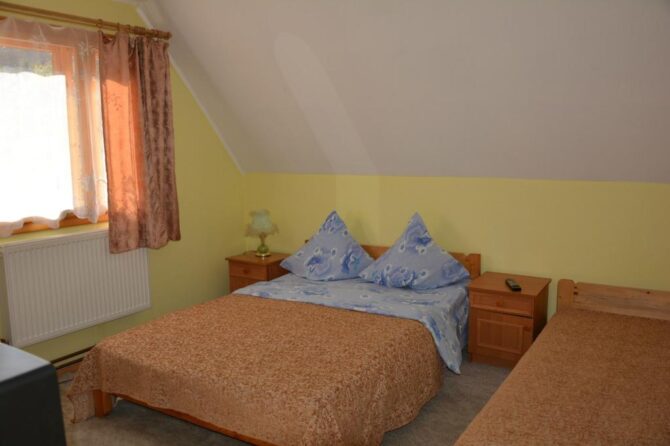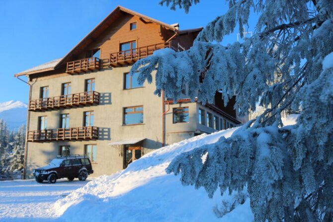 Трехэтажный мини-отель находится в 200 метрах от подъемника Карпатьска Чайка. Для заселения постояльцев предлагаются двух, трех, четырех местные, семейные номера. В прихожей есть место для лыжного снаряжения. Тут же стоит общий чайник, сахар и пакетики. Предусмотрена общая комната отдыха. Есть сауна (оплачивается отдельно). Установлены столы бля бильярда и пинг-понга. Парковки нет.