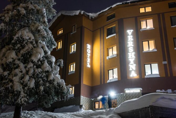 «Вершина» — это еще один современный отель с комфортабельными номерами и собственным баром. Гостям предлагаются двух, трех местные, семейные и люксовые номера. До подъемника «Вершина Карпат» всего 30 метров. Лыжное снаряжение хранится в отдельных шкафчиках, которые закреплены за каждым номером. Пятиэтажное здание оснащено лифтом. Утром накрывается завтрак. За парковку оплата не берется.