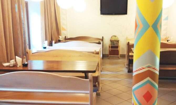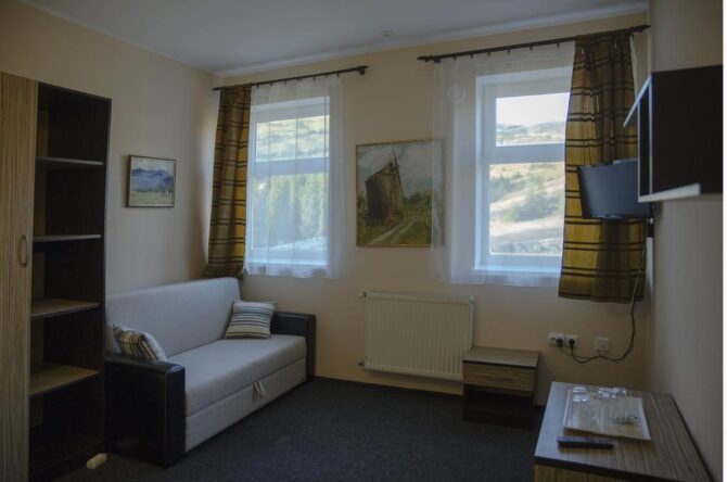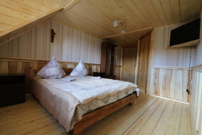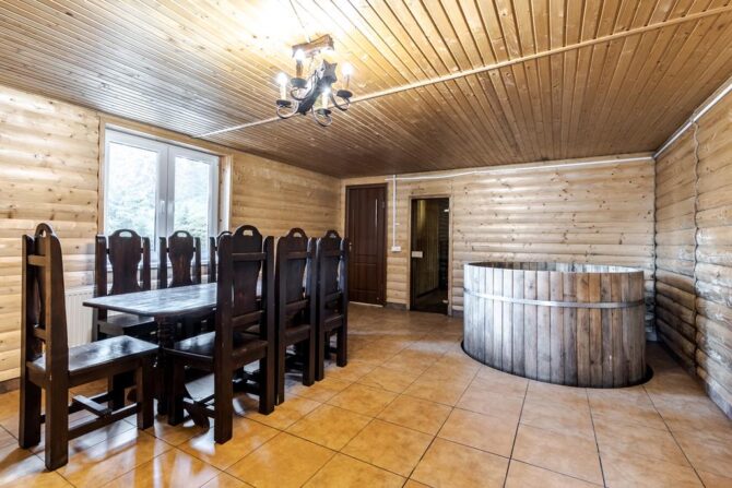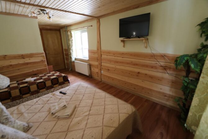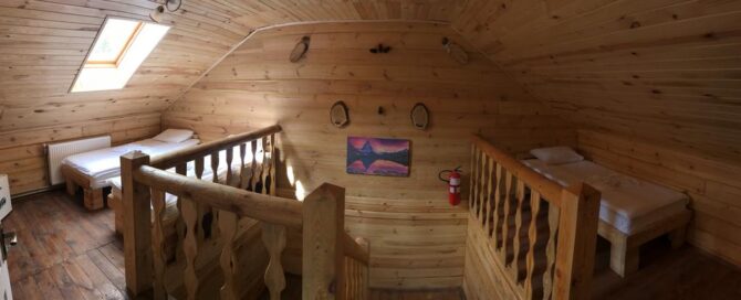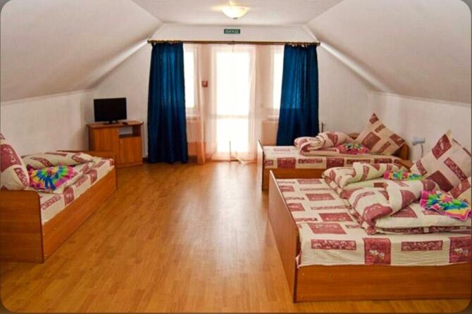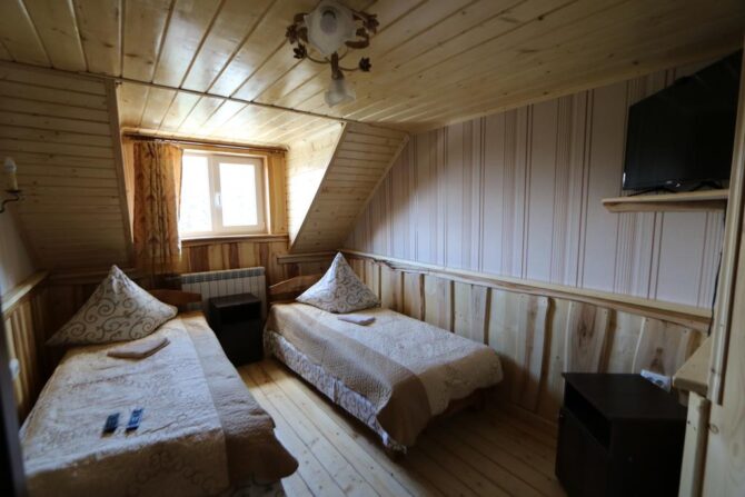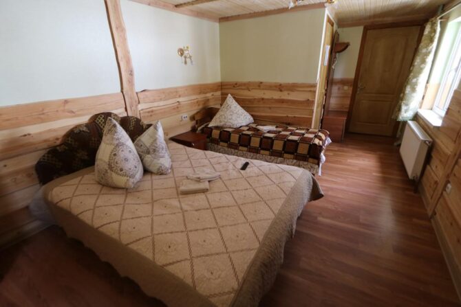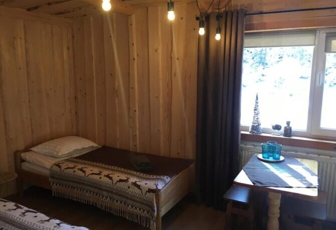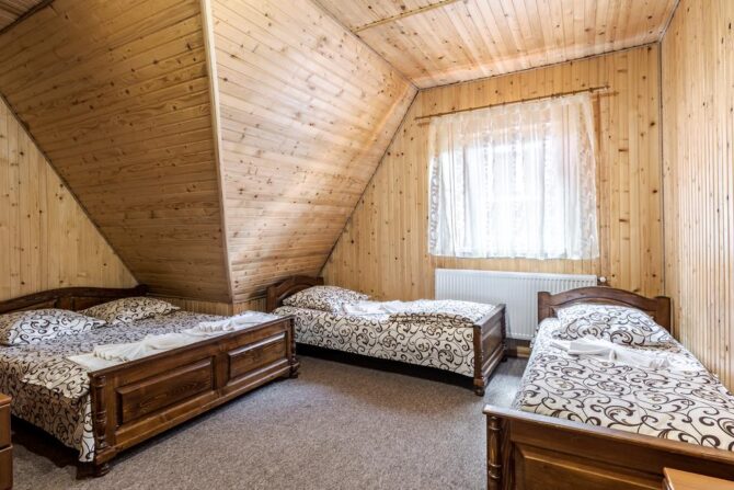 Аутентичный закарпатский терем-теремок находится рядом с подъемником Oaza. Для приема гостей подготовлены двух, трех, четырех местные, общие женские и мужские номера. Владельцы мечтают, чтобы постояльцы чувствовали себя здесь, как дома. Они подготовили детскую площадку, игровую комнату, бесплатный паркинг, мангальные зоны и принадлежности для барбекю. Хозяева – большие друзья четвероногих питомцев. За их проживание оплата не берется. В гостинице действует правило – все должны снимать обувь при входе в здание. По дому гости ходят босиком или домашних тапочках. Теплые полы и ковры создают дополнительный уют. О питании придется позаботиться самостоятельно. В номерах нет чайников и кофеварок, нет общей кухни. Рядом находится кафе, в котором предлагаются готовая еда и напитки.