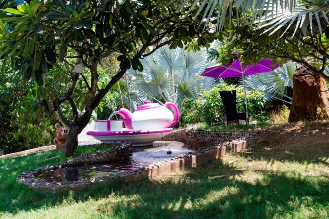 - тропический сад, украшением которого стал фонтан в виде чайника;