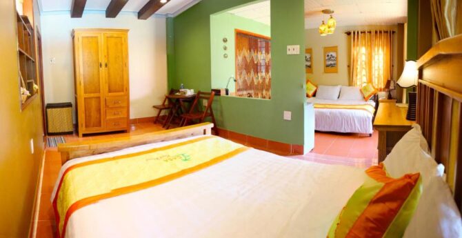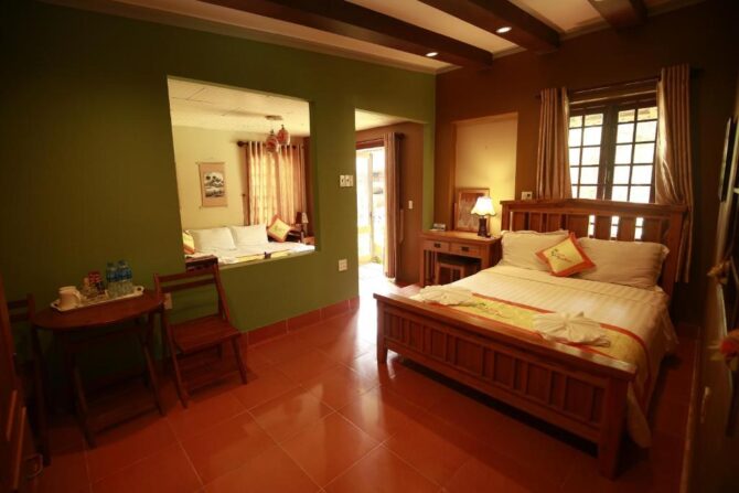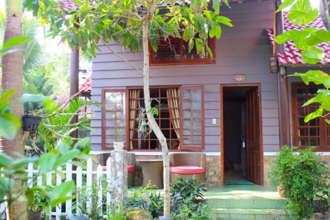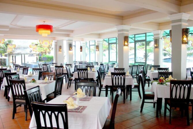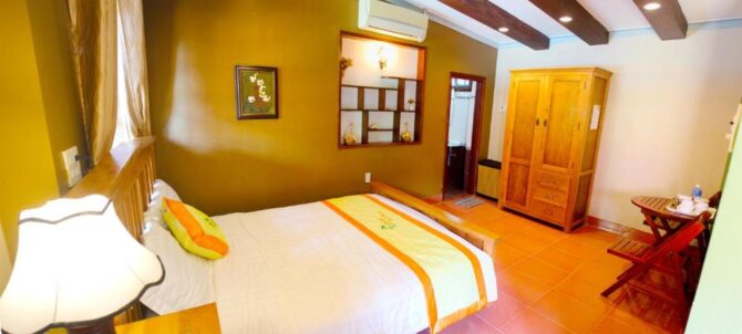 Меню ресторана, дизайн которого выполнен в традиционных вьетнамских мотивах, включает местные блюда. Гости высоко оценивают профессиональную работу госпожи Ланы – владелицы отеля – и всего персонала.