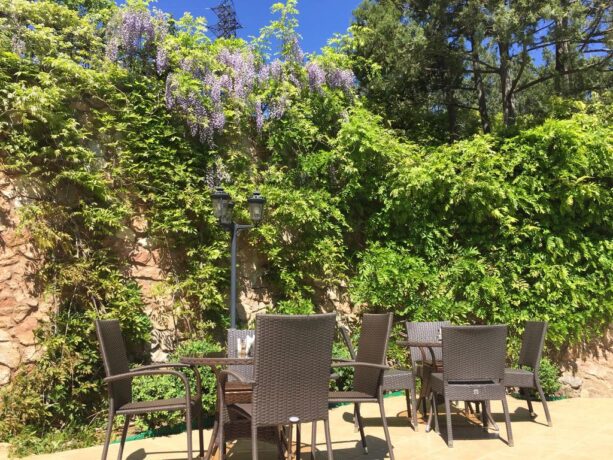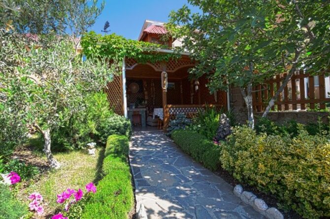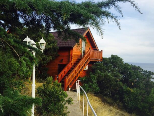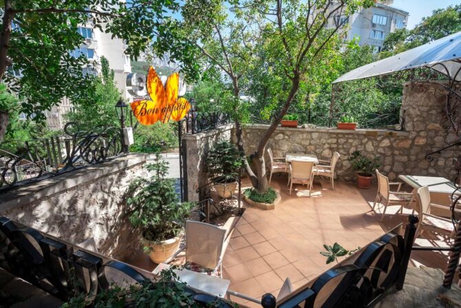 Пока конкуренты заманивают гостей беляшами и полосатыми зонтиками по 300 рублей на пляже, гостевой дом «Дача «Фисташка» решил пойти другим путем. Для начала, при строительстве оставили все деревья, поэтому на территории работающего с 2011 года отеля осталось множество старых крымских дубов, иглицы, грабов и можжевельника. Название заведение получило от зарослей фисташки – только не той, которая вкусная, а той, которая красивая, со смолой и эфирными маслами.