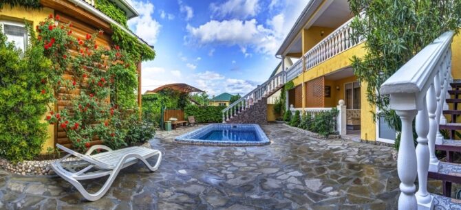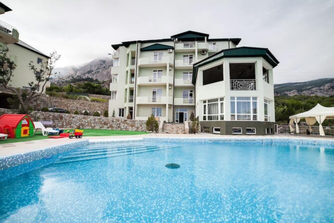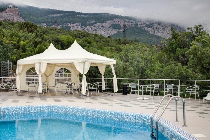 На вилле нет собственных развлекательных ресурсов, кроме бассейна, – это скорее место для ночевки, не времяпрепровождения, но администрация всегда посоветует интересные места в Большой Ялте. Кстати, на территории живут котики, способные растопить даже самые черствые сердца.