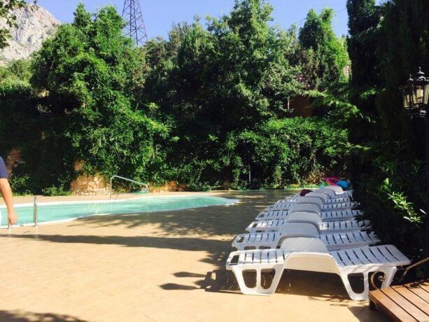 Один из минусов гостиницы (которые в то же время и плюс) – удаленность от моря. Идти нужно не менее получаса. Но из-за удаленности от пляжных развлечений в номерах тихо – это раз, а по дороге можно всласть надышаться можжевельником, которым заросли склоны – это два. Но подниматься назад будет посложнее: гостиница находится на холме.