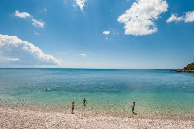 Как таковой инфраструктуры для детей нет – ни меню, ни детской площадки, даже территория огорожена очень условно, поэтому за ребенком нужно внимательно следить. Пляж слишком маленький – как перед воротами лодочного гаража, с ребенком будет тяжело отдыхать.