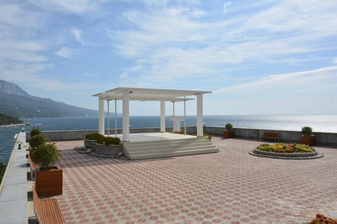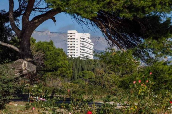 Это во всех смыслах потрясающее место, история которого уходит в середину XIX века к знаменитому чайному королю Александру Кузнецову, который тяжело болел туберкулезом и жизненно нуждался в морском воздухе. Олигарх своего времени, он построил крымскую дачу с привлечением самых модных архитекторов, купил расположенный рядом парк и превратил все 300 гектаров в удивительно красивое место. С приходом в Крым советской власти поместье автоматом стало санаторием для рабочего класса, а с 1945 года и до самого распада тут находилась здравница для высших партийных чинов со всеми вытекающими, включая обеспечение и материальную базу.