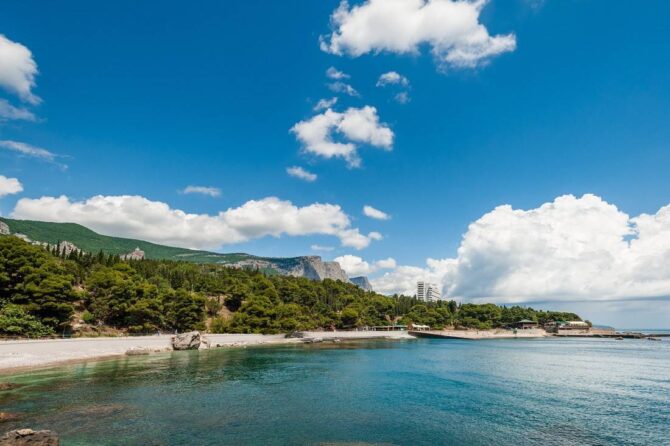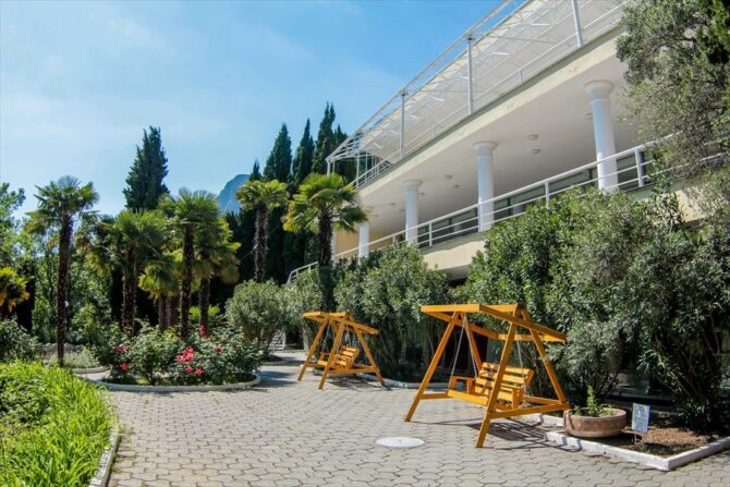 Самая южная точка Крыма – это санаторий «Южный», который был открыт еще в далеком 1979 году как здравница для высших чинов КПСС, страдающих от болезней верхних дыхательных путей. За время работы «Южный» принял гостей из 120 стран мира! Природа, море, высококвалифицированный персонал – это не все. Здания соединили уникальными стеклянными галереями, а к морю гостей привозят эксклюзивные лифты. Номерной фонд изначально были спроектированы по индивидуальному дизайну, но сейчас их стандартизировали.