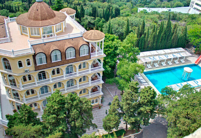 Великолепный курортный отель «1001 ночь» приглашает гостей погрузиться в сказочный мир востока, насладиться высоким сервисом и искренним гостеприимством. Он находится в заповедной парковой зоне Мисхора. Интерьеры и экстерьеры отеля выполнены в изысканном восточном стиле, о чем уже говорит его название. Удобное расположение позволяет гостям без усилий добраться до главных достопримечательностей курорта – замка Ласточкино гнездо и Воронцового дворца.
