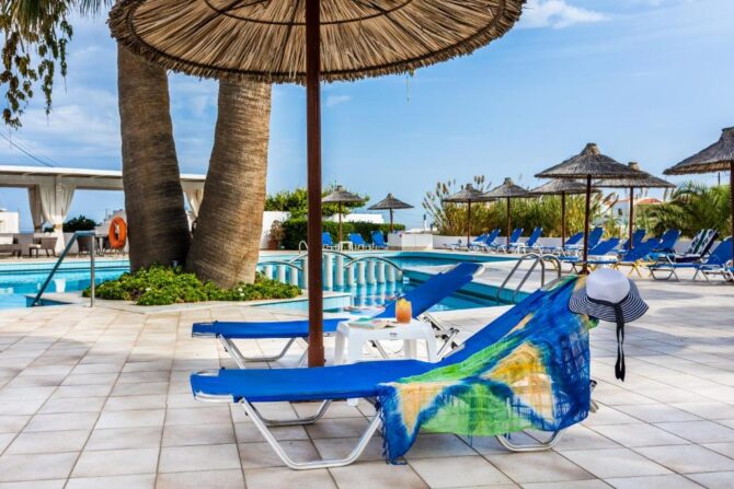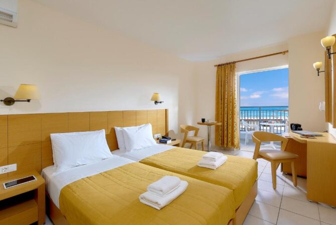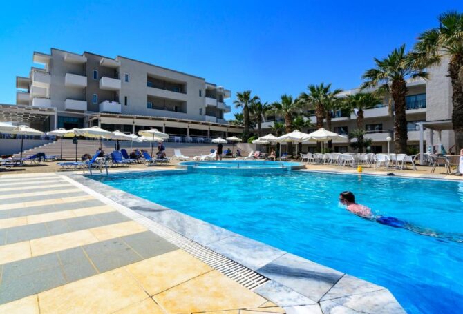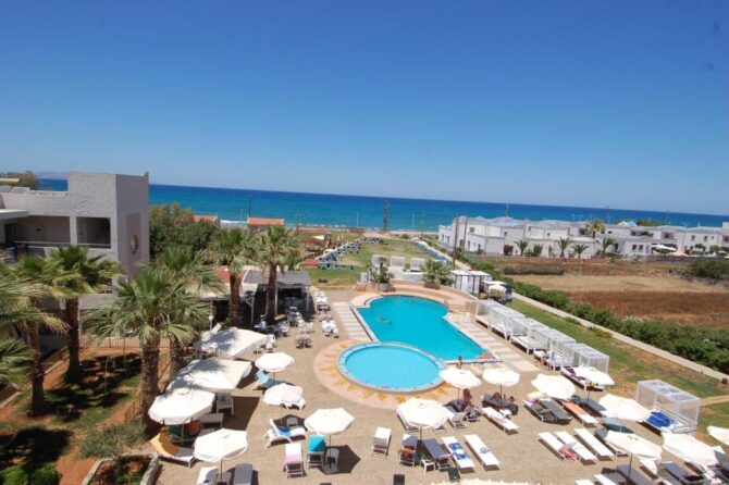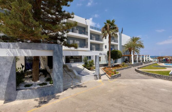 Этот отель 4 звезды расположен всего в 50 метрах от пляжа. Для размещения гостей предлагают пять типов номеров от стандартов до фешенебельных сюитов. Всего в фонде 67 стильно оформленных номеров. Постояльцев обслуживают по системе «Все включено» — кормят в ресторане, выпить и перекусить можно в баре. Для путешественников, приезжающих прогуляться по достопримечательностям, предлагается полупансион (завтрак + ужин). Бассейн, лужайки и сады являются оазисом отдыха и спроектированы с учетом получения удовольствия и безопасности. Для самых маленьких гостей есть детский бассейн (глубина 45 см) и полностью оборудованная детская площадка. Каждый день гостей ждут развлечения под названием «Греческая ночь». Вечером готовят блюда на углях, музыканты и танцоры устраивают шоу.