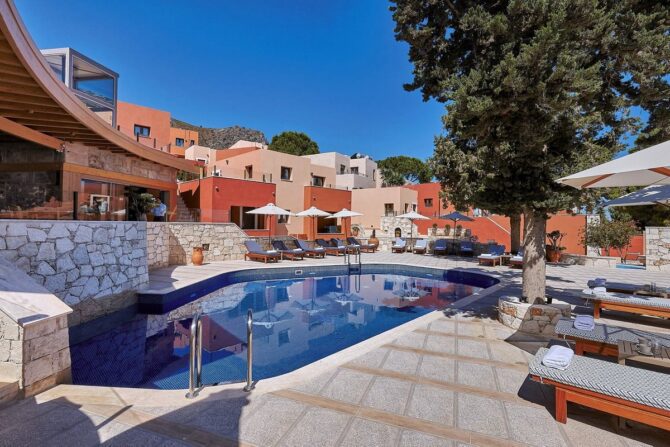 Любителям отдыхать в аутентичных местных условиях определенно понравится этот гостиничный комплекс. Он находится в традиционной критской деревне Кутулуфари и построен в традиции древних критских городов – в виде амфитеатра, спускающемуся к морю. 105 номеров класса Люкс расположены в 15 зданиях с лифтами. Сохраняя “деревенскую” атмосферу, вдохновленную местной архитектурой, курортный отель Esperides Crete располагает каменными зелеными садами, центральной площадью с бассейном, уединенной тихой зоной, природным спа-салоном и коллекцией номеров и люксов с частными бассейнами и джакузи. Все они оформлены в характерном уютном дизайне, который позволит гостям чувствовать себя как дома. Рассматривая еду как важную часть отдыха, ресторан предлагает превосходный средиземноморский шведский стол с местными рецептами на завтрак и ужин, оригинальную критскую таверну в традиционной обстановке и непринужденную террасу для отдыха с потрясающим видом на море.