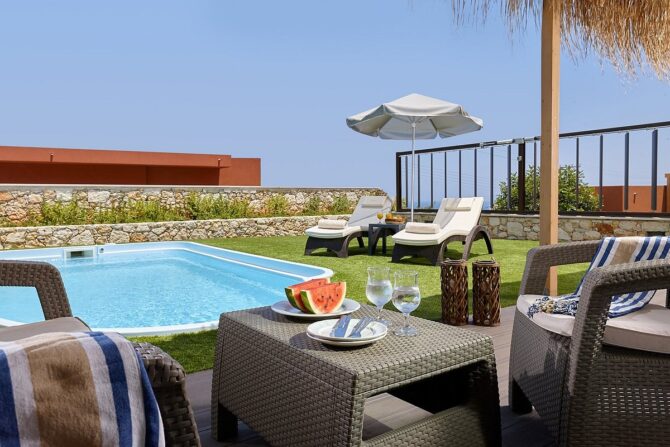 Это курортный отель с просторными номерами и балконами в каждой комнате. Он протянулся вдоль песчаного побережья, а его сервис разработан с учетом самых взыскательных вкусов путешественников. Концепция заключается в том, что объединить высококачественный досуг с впечатлениями, которые прежде всего связаны с открытием для себя тайн и секретов острова Крит. При строительстве большое внимание было уделено разработке категорий номеров и люксов, которые одновременно удобны по назначению и шикарны по дизайну. Они создают у гостей неповторимое ощущение домашнего уюта и волшебства райского отдыха.