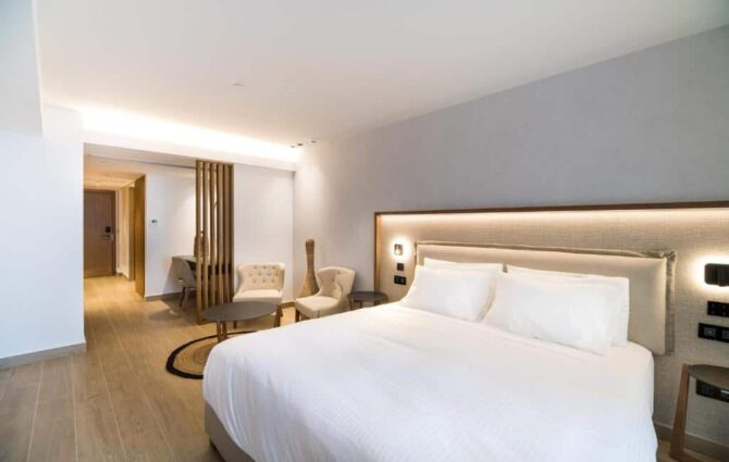 Курортный отель Nana Princess предлагает превосходный отдых на 5+ с широким выбором вариантов проживания из 102 безукоризненно оформленных люксов и вилл. Современная мебель и планировка каждого номера – это ощущение роскошного великолепия, отвечающее самым высоким эстетическим стандартам вплоть до мельчайших деталей. Некоторые из них оснащены частными парными, саунами и тренажерными залами. Жилые помещения оснащены самыми современными удобствами и удобствами: от умных светильников до бассейнов с подогревом с индивидуальной регулировкой температуры. В каждой комнате установлена кофемашина Nespresso. Этот отель — один из новейших роскошных спа- и велнес-курортов Европы, который предоставляет первоклассное гостеприимство и полный спектр эксклюзивных VIP-услуг. Меню разработано шеф-поваром, отмеченным звездой Мишлен. Поесть можно в одном из трех ресторанов или приказать дворецкому (закреплен за каждой виллой) подать блюда на территории номера. Здесь также есть большой выбор заманчивых мест, где можно насладиться освежающим коктейлем, фирменным напитком или прекрасной сигарой. Частный пляжный бар, релакс-бар у бассейна, уникальный кальян-лаундж создают прекрасную атмосферу полноценного отдыха.
