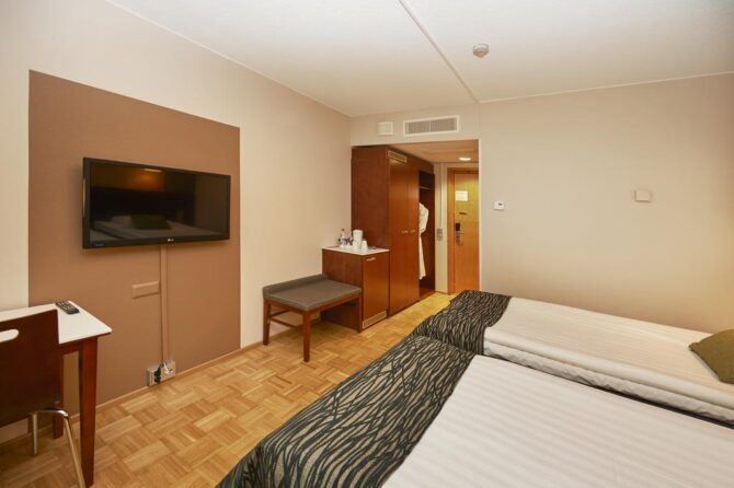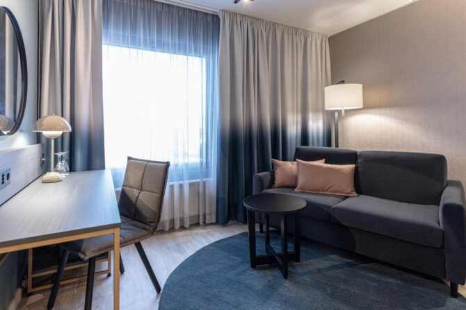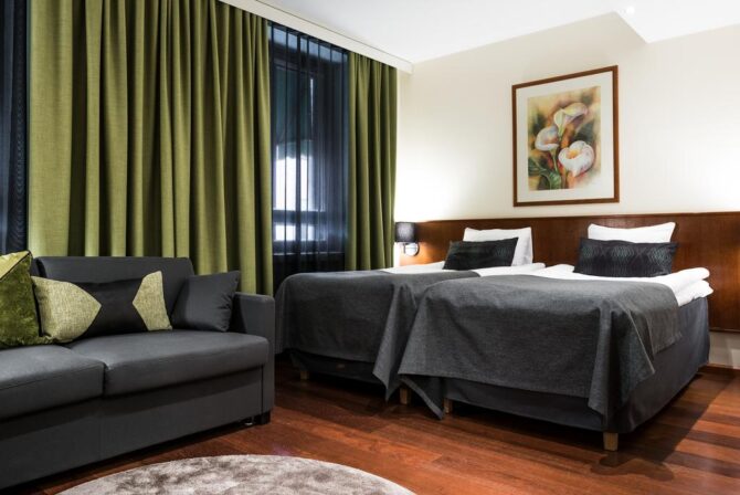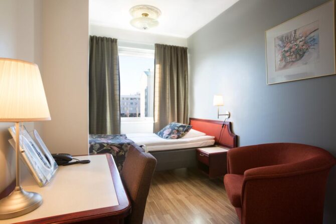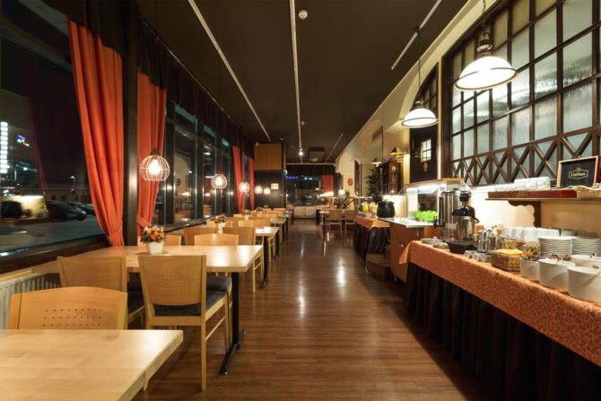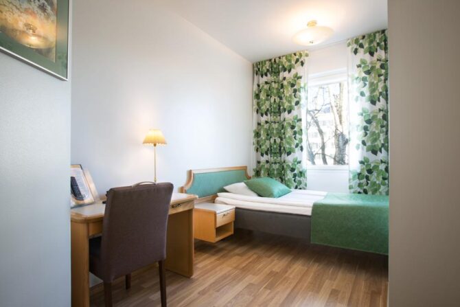 Это еще один объект гостеприимства от бренда Сокос, расположенный в самом центре города. Работают три ресторана. Завтрак – шведский стол – накрывается в зале ресторана «Франческа». В 2-х минутах ходьбы находится театр Ювяскюля. Вечером на территории комплекса можно посетить общую сауну, поужинать в ресторане французской кухни или выпить в баре.