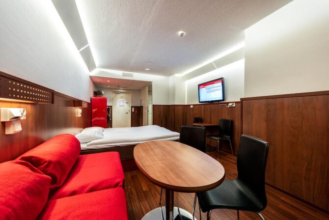Большой отель расположен недалеко от Университета. Все 202 номера недавно отремонтированы и ждут своих посетителей. Завтрак накрывается в 6 часов утра по будням. Для вечернего отдыха предлагаются фитнес-центр, бассейн, сауна. Можно поужинать в ресторане, заказав блюда по меню. Работает бар. Ж/д вокзал находится в 50 метрах, а центральная пешеходная улица буквально за углом. Летом выдаются на прокат велосипеды, гости приглашаются принять участие в экскурсиях на лодках. Зимой популярными являются лыжные маршруты и поездки на горнолыжные курорты.