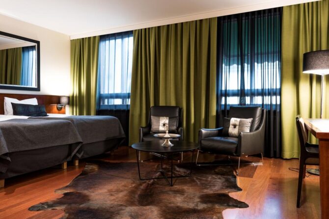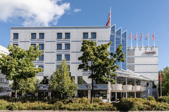 Гостиницы бренда Scandic предоставляют сервисные услуги по самому высшему классу. Интерьеры обустроены по европейским эко-стандартам. Отель находится в центре Ювяскюля, рядом ж/д и авто вокзалы. К услугам гостей 150 номеров, сауна, бассейн, терраса, ресторан и кафе. Завтраки не входят в оплату проживания. Есть бесплатная парковка под открытым небом. 18 номеров предназначены для размещения с животными. Рядом – пешеходная зона, гавань, магазины. На стойке регистрации можно взять напрокат велосипед, коврик для йоги, водный пояс, палки для скандинавской ходьбы. Летом открыта площадка для игры в гольф.