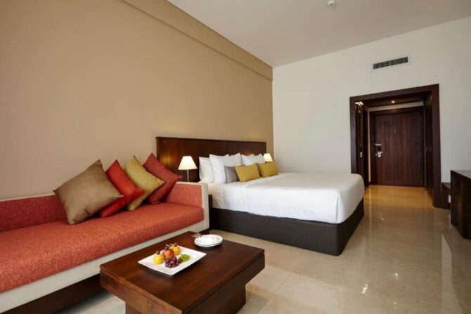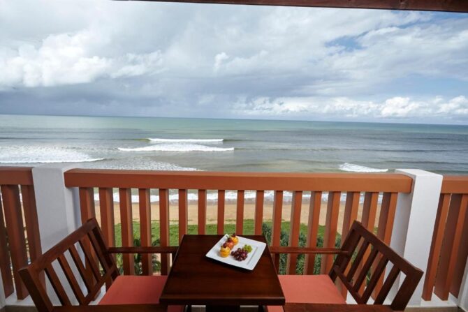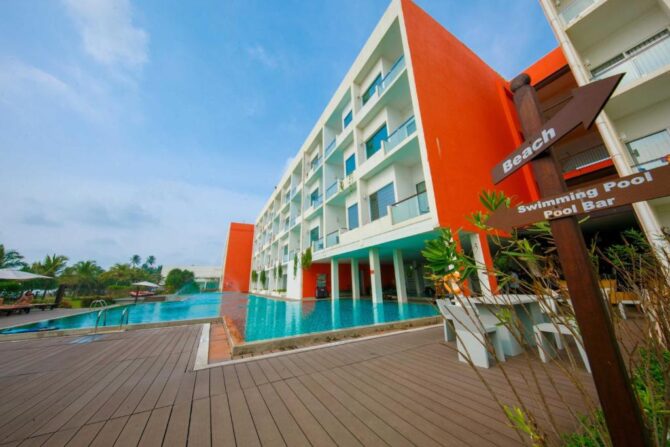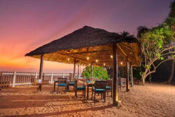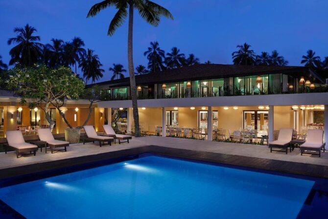 Великолепные виды на лагуну и океан открываются с территории 5-звездочного отеля «Avani Kalutara Resort». В фонде – 105 номеров категорий Супериор и Делюкс. За питание гостей отвечают основной ресторан и 3 бара. Завтрак накрывается в буфете по системе шведской линии. Постояльцам круглосуточно доступна услуга доставки еды и напитков в номер. Достаточно позвонить по телефону, чтобы заказать любые закуски, горячие блюда, выпечку по номинальной цене ресторана. Здесь можно отдыхать так, как хочется: загорать на пляже или у бассейна, играть в различные игры на спортивных площадках, заняться йогой или отправиться сжигать калории в тренажерный зал, отправиться на прогулку на каяках или полностью расслабиться в СПА. В отеле выдаются на прокат велосипеды и «тук-туки».