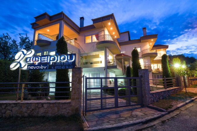 Курортный отель Limneon находится на въезде в Касторию совсем рядом с озером Орестиада и ориентирован не так на туристов, которые жаждут насладиться красотами региона, как на ценителей меховых изделий. Именно поэтому тут не заморачиваются какими-то эксклюзивными услугами (несмотря на Resort & Spa), но радуют хорошими кроватями, плотным завтраком и большой парковкой. Тут тихо, приятно и можно выспаться перед посещением шубного рынка.